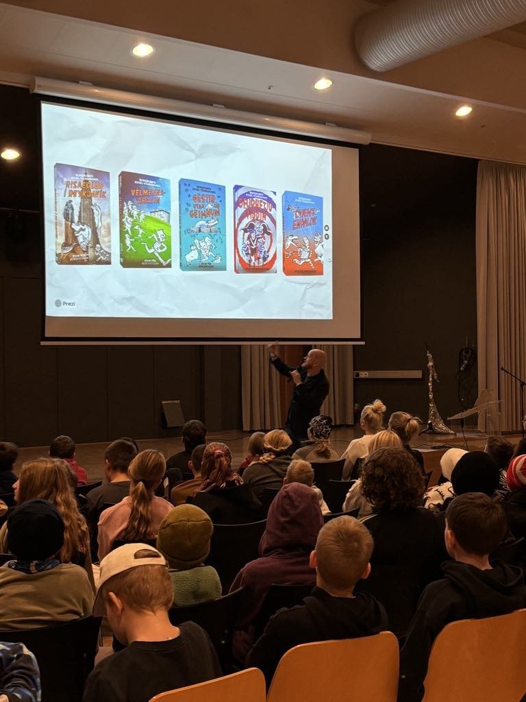 Rithöfundurinn Ævar Þór Benediktsson heimsótti skólann og las upp úr nýjustu bók sinni, Skólastjórinn, sem nýlega hlaut Barnabókaverðlaun Guðrúnar Helgadóttur.