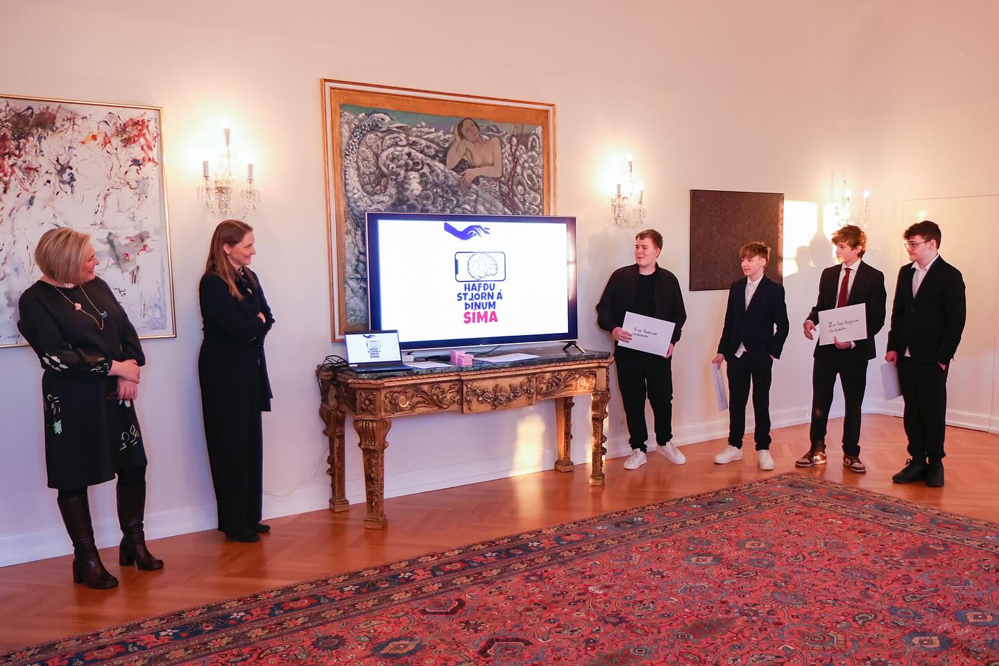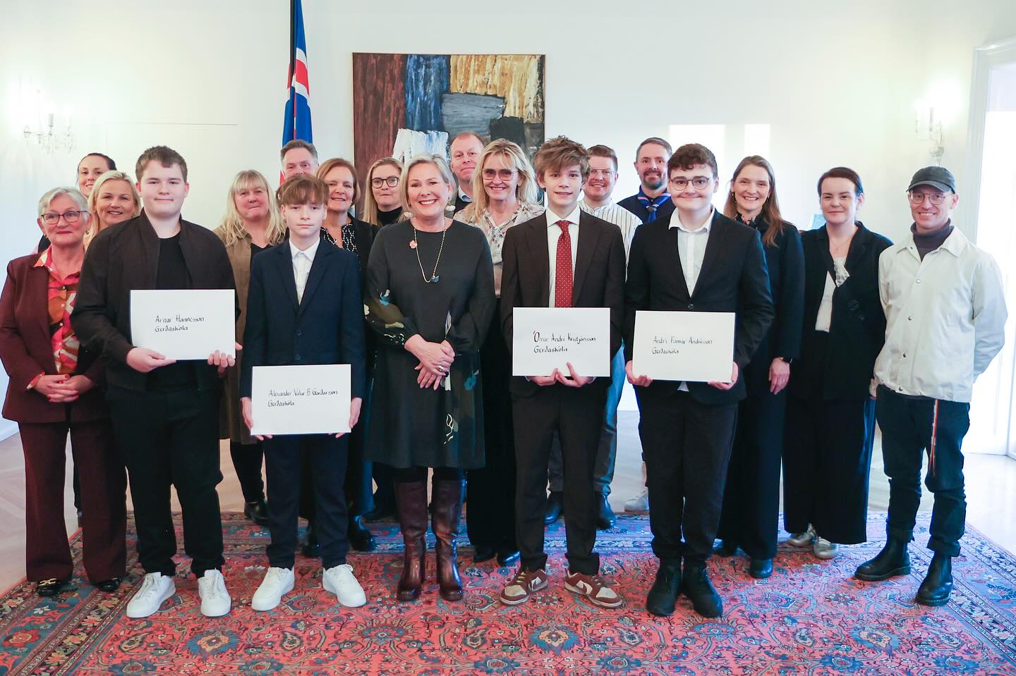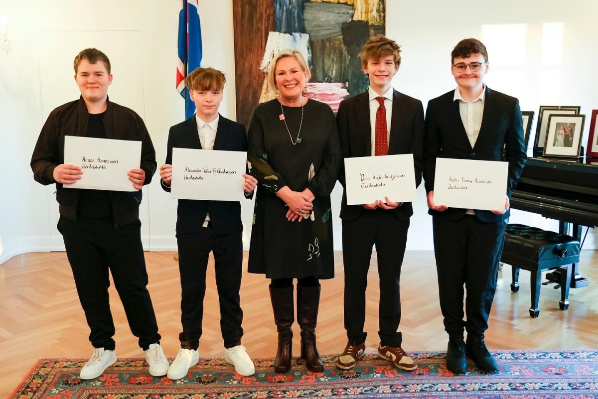 Það var svo sannkölluð hátíðarstund þegar ljóst varð að nemendur frá okkur í Gerðaskóla höfðu unnið til forvarnarverðlauna. Við glæsilega athöfn á Bessastöðum, föstudaginn 28. nóvember síðastliðinn, tóku þeir Arnar, Alexander, Andri Fannar og Ómar Andri við grunnskólaverðlaununum. Sigurverkefni þeirra var frábært veggspjald sem bar heitið „Ekki eyða tíma í síma“.